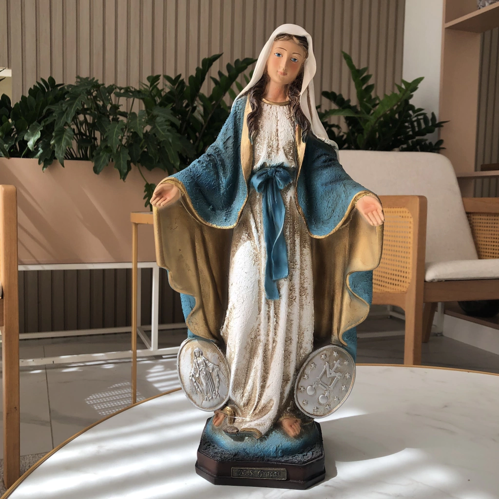 Imagem de Resina de Nossa Senhora das Graças com Medalha Milagrosa - Modelo Barroco