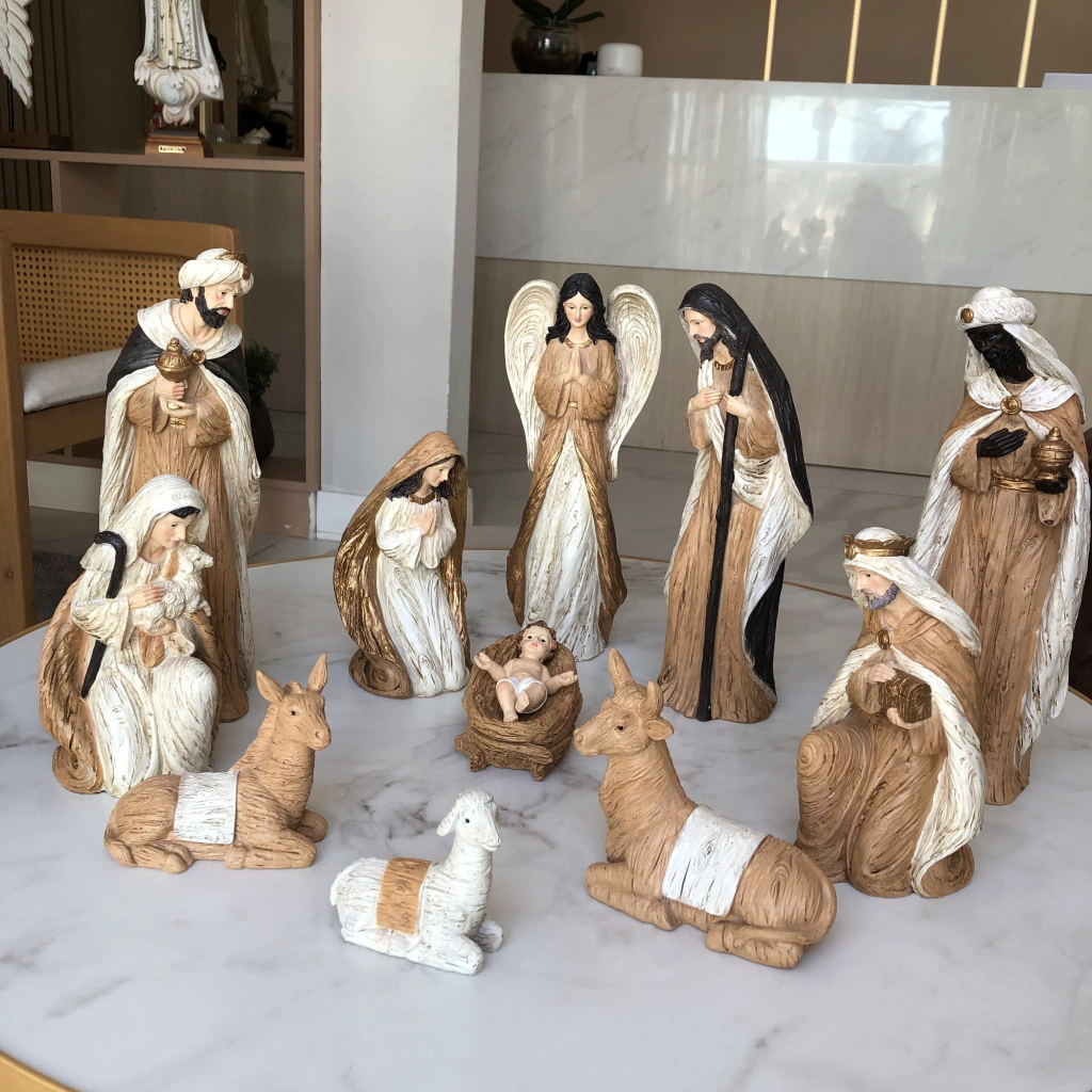Traga o encanto do Natal para sua casa com o nosso lindo Presépio de 30 cm, composto por 11 peças incríveis!