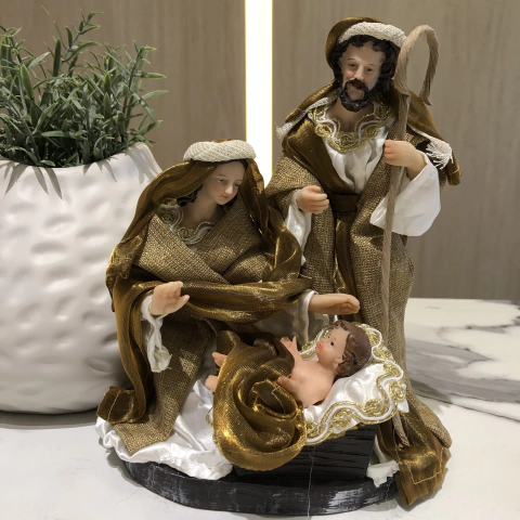 Início>Presépio>Sagrada Família Natalina 20 cm Dourada Presépio