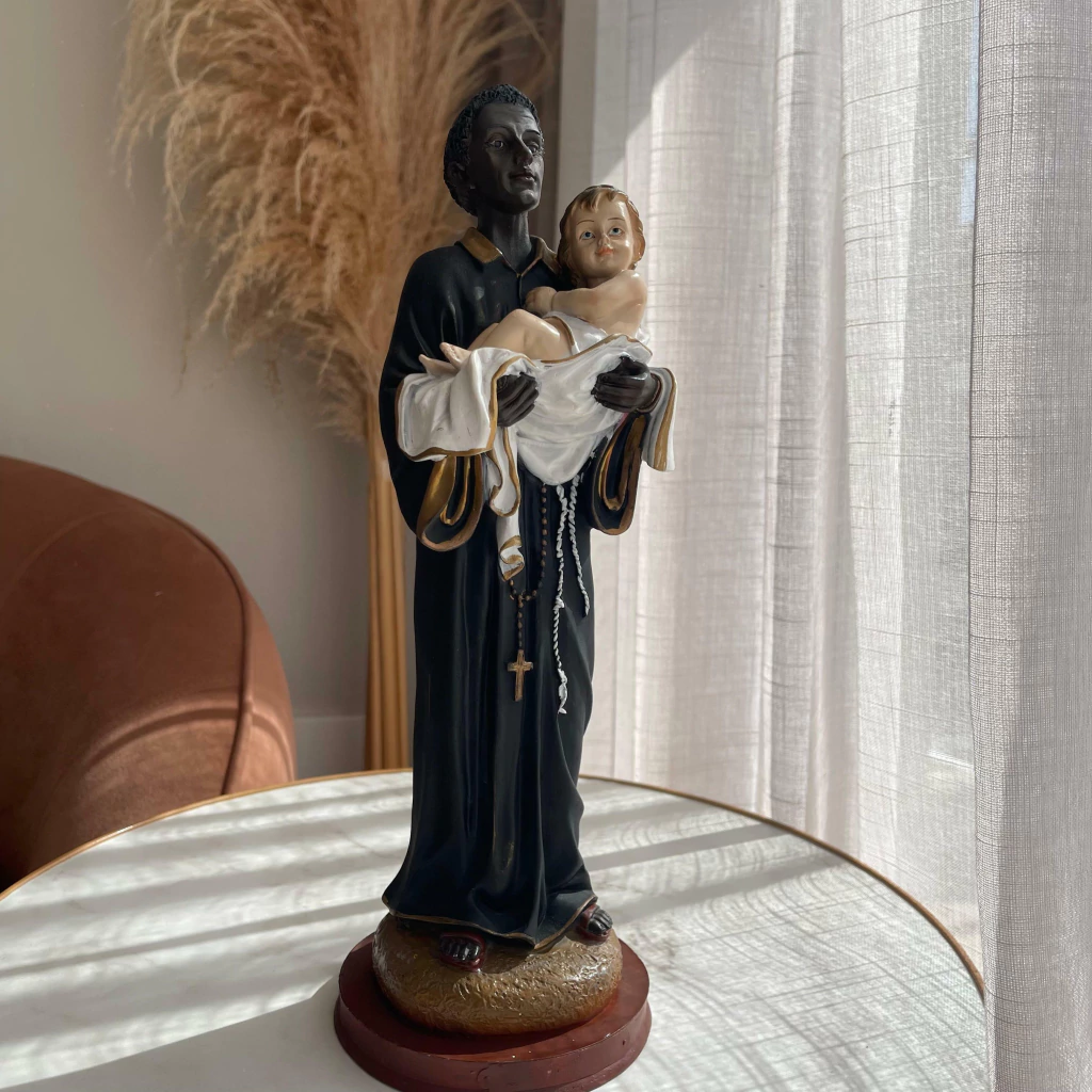 São Benedito, imagem em resina nacional de alta qualidade. Arte sacra que traz à vida com detalhes cuidadosamente trabalhados e cores vibrantes que destacam sua pureza e devoção. Um símbolo de fé, proteção e esperança, perfeito para adornar qualquer ambiente com um toque de espiritualidade e beleza.